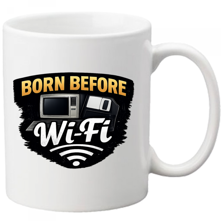 Microwavable, certified food-grade white ceramic mug packed in a box with a side window. Capacity: 330 ml, 11 oz;