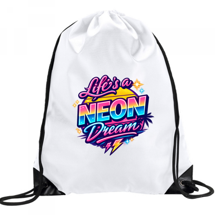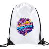 Polyester sports backpack measuring about 35x45 cm with black shoulder strap.